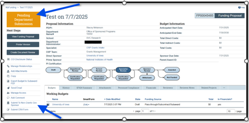 Departments are required to update the status of their proposals in MyFunding when proposals are submitted by the Department directly to the sponsor.